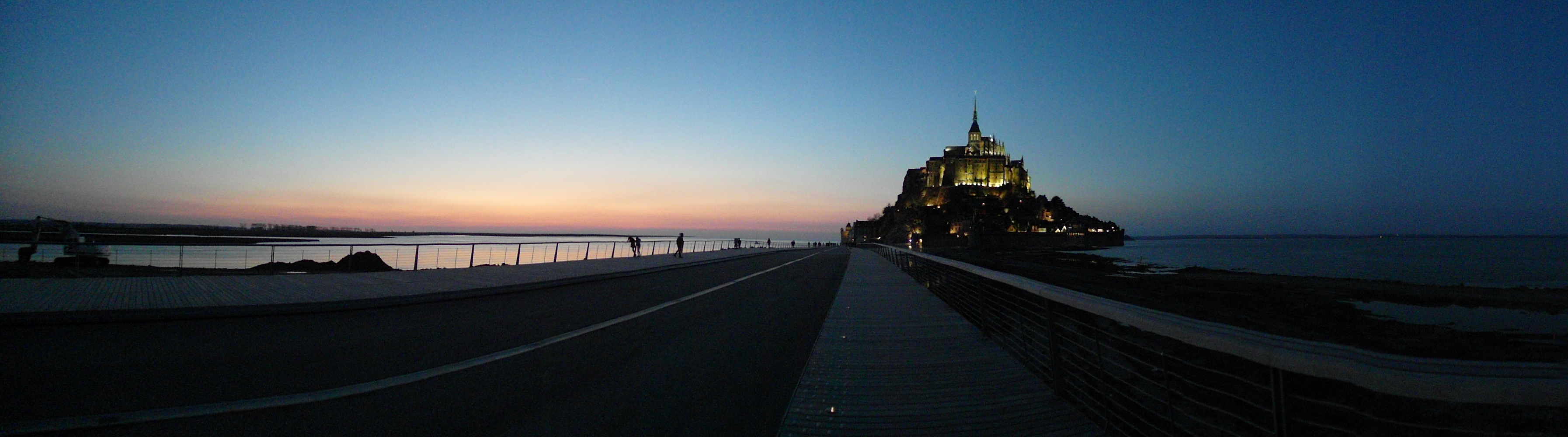 我們走到城外的木棧道欣賞聖米歇爾山的日落和夜景:
